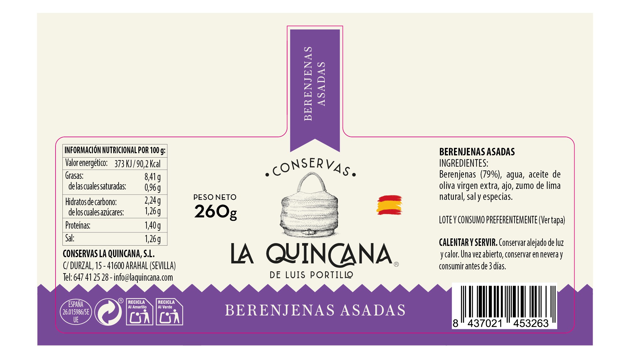 INGREDIENTES: Berenjenas (79%), agua, aceite de oliva virgen extra, ajo, zumo de lima natural, sal y especias.